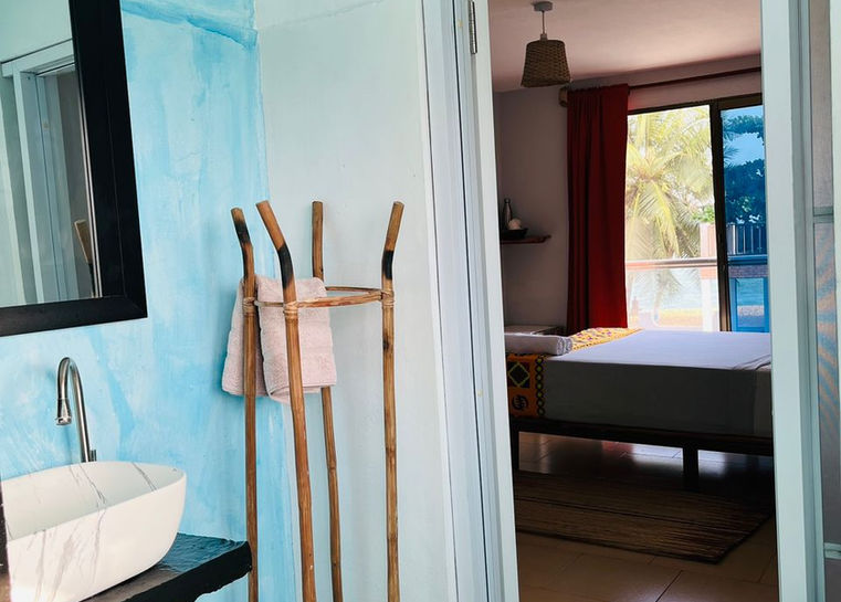 Odopa means "good love" in Twi. Located on the first floor of the Afiki Beach House, these spacious suites feature handcrafted four-poster king beds and bespoke furniture made by local artisans. Whether you choose the full ocean view of Odopa 1 or the partial sea views in Odopa 2, you’ll enjoy a peaceful, culturally grounded atmosphere perfect for a romantic escape or a luxury retreat.